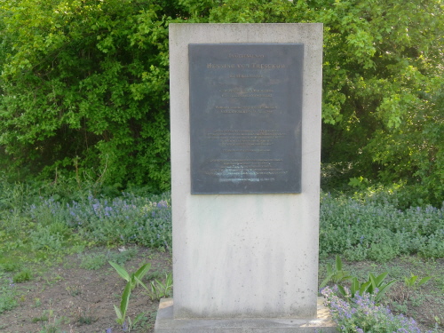 Anlässlich vom 100. Geburtstag des Widerstandskämpfer und Mitorganisator des Attentats auf Hitler am 20. Juli 1944, General Henning von Tresckow, wurde ihm zu Ehren am Rande des Nordparks, ganz in der Nähe der nach ihm benannten Straße, eine Stele aufgestellt. Jedes Jahr finden an dieser Stelle am 20. Juli Gedenkveranstaltungen und Kranzniederlegungen statt. Trescko wurde am 10. Januar 1901 in Magdeburg als Sohn einer pommerschen Adelsfamilie geboren. Er folgte den preußisch-militärischen Traditionen seiner Familie. Nach der Machtergreifung der Nazis erkannte er sehr bald den wahren Charakter der militärischen Strategie Hitlerdeutschlands und stellte sich mehr und mehr auf die Seite der Gegner Hitlers. Er nahm an mehreren Attentaten auf Hitler teil, die alle fehlschlugen. An der Vorbereitung des Attentats am 20. Juli 1944 war er an der Seite des Oberst von Stauffenberg massgeblich beteiligt,konnte sich aber nicht unmittelbar an der Ausübung des Attentats beteiligen. Als er an der Ostfront hörte, dass das Attentat fehlgeschlagen war, nahm er sich das Leben.