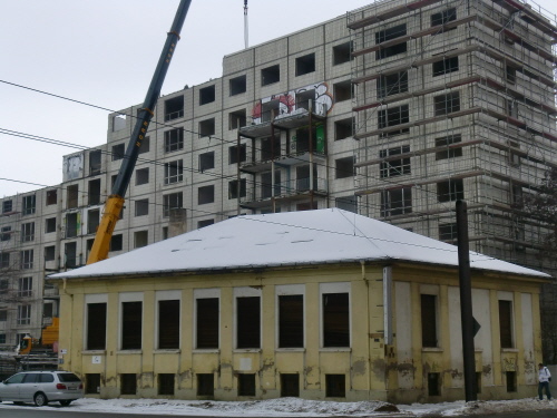 Die Baracke des ehemaligen VEB-Fischhandel, (später eine Gaststätte), am Otto-Kaiser-Ring. Dort werden mehrere Einfamilienhäuser gebaut