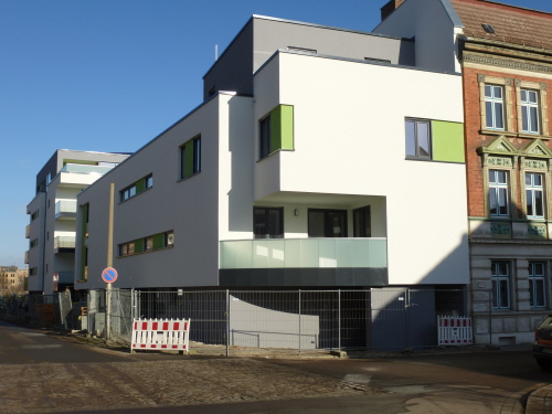Das ehemalige Internat der Pädagogischen Fachschule in der Moldenstraße, an deren Stelle nach dem Abriss vier Häuser mit 24 Wohnungen von der MWG Magdeburg gebaut wurden
