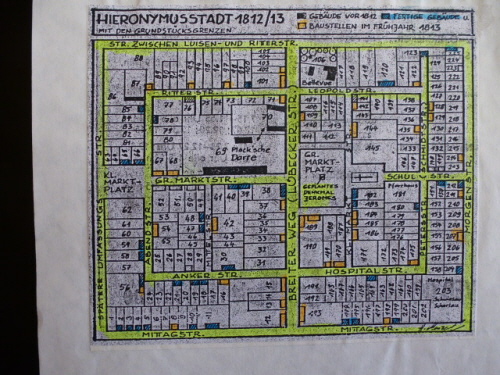 Nach dem Abtragen der Häuser in Neustadt erhalten die Geschädigten vom König Bauland an der Straße nach Barleben zugewiesen. Bereits Ende 1812 ziehen die ersten Bewohner ein. Auf Wunsch des Königs Hieronymus Napoleon wurde die neu entstehende Stadt "Hieronymusstadt" genannt. Nach Abzug der Franzosen erhält die Stadt wieder den Namen Neustadt, der neue Teil wurde "Neue Neustadt", der stehen gebliebene Teil der Neustadt bekam den Beinamen "Alte Neustadt".