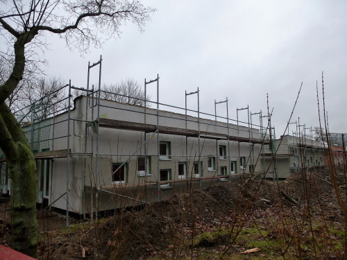 In der Sieverstorstraße geht es vorwärts! Das Haus Nr. 43 wird komplett saniert (links), das neue Wohnhaus auf dem Gelände der ehemaligen Brauerei ist aus dem Keller!