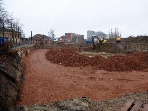 Der Zustand der Baustelle auf dem Gelände der Brauerei in der Sieverstorstraße am 26.Januar 2018. Es geht voran beim Bau eines Wohnhauses