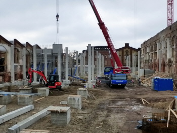 Umbau ehemaliges E-Werk am Hafeneingang, die Baustelle im Dezember 2018