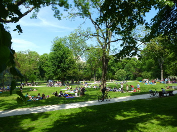 Am Himmelfahrtstag (10. Mai 2018) Begegnungsfest im Familienhaus mit rund 6000 Besuchern (Foto links) und Grillen im Nordpark, nicht nur auf den zugelassenen Flächen (Foto rechts)