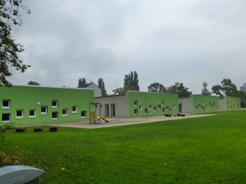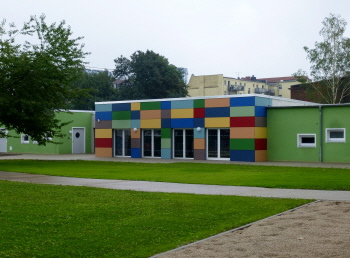 Die Kindertagesstätte in der Moldenstraße wurde nach Abriss des alten Gebäudes vollkommen neu aufgebaut und ist bereit, die Kinder wieder aufzunehmen. Fotos vom 2.August 2018