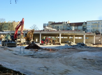Der Neu- und Umbau am Hafeneingang (ehemaliges E-Werk) geht zügig voran. Die Gerüste sind gefallen. Links ist das alte Gebäude zu sehen. Foto rechts 20.1.2019