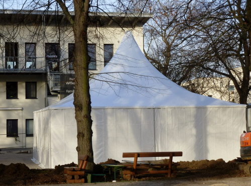 Das Familienhaus hat ein Zelt bekommen und ist damit wetterunabhängiger geworden, Foto 23.2.2019