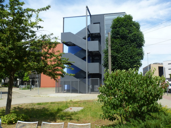 Die Nottreppe am Gebäude der Otto-von-Guericke-Universität Magdeburg (Wirtschaftswissenschaft) an der Pfälzer Straße ist fertiggestellt. Foto Mittank 11.6.19