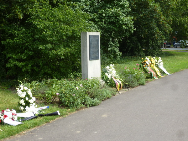 Am 20.Juli 2019 fand an der Gedenkstele Henning von Tresckow anlässlich des 75. Jahrestages des Attentats auf Hitler zum Gedenken der Opfer eine Kranzniederlegung statt. Foto H.Mittank. 20.7.2019