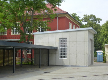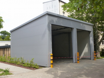 Die Fahrbereitschaft der Universität (Haus 21) erhielt zwei neue Garagen. Fertigstellung war Mitte Juli 2019. Foto H.Mittank, 20.7.2019