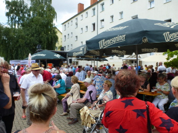 Die MWG feierte an der Hohepfortestraße (DDR-Museumswohnung) am 21. Juli ein Fest. Unter anderem waren zu Gast Klaus-Dieter Henkler und Monika Hauff. Fotos H. Mittank 21.7.2019