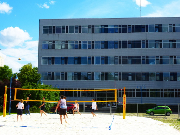 Auf einem Parkplatz der OvGU ist ein Beachvolleyball-Platz bis Ende August eingerichtet worden. Er kann von allen Bürgern, vor allem aber von Studenten genutzt werden. Am 18.6.2024 findet im Rahmen des Sommerfestes der Universsität ein Turnier statt. Foto H. Mittank 16.6.2024