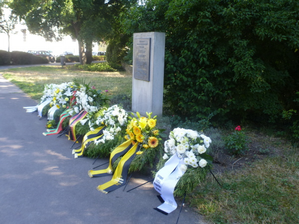 Anlässlich des 80. Jahrestages vom Attentat auf Hitler am 20. Juli 1944 legten hohe Persönlichkeiten des Landes Sachsen-Anhalt, der Stadt Magdeburg, der Bundeswehr und Parteien und Organisationen an der Stele am Nordpark Kränze nieder